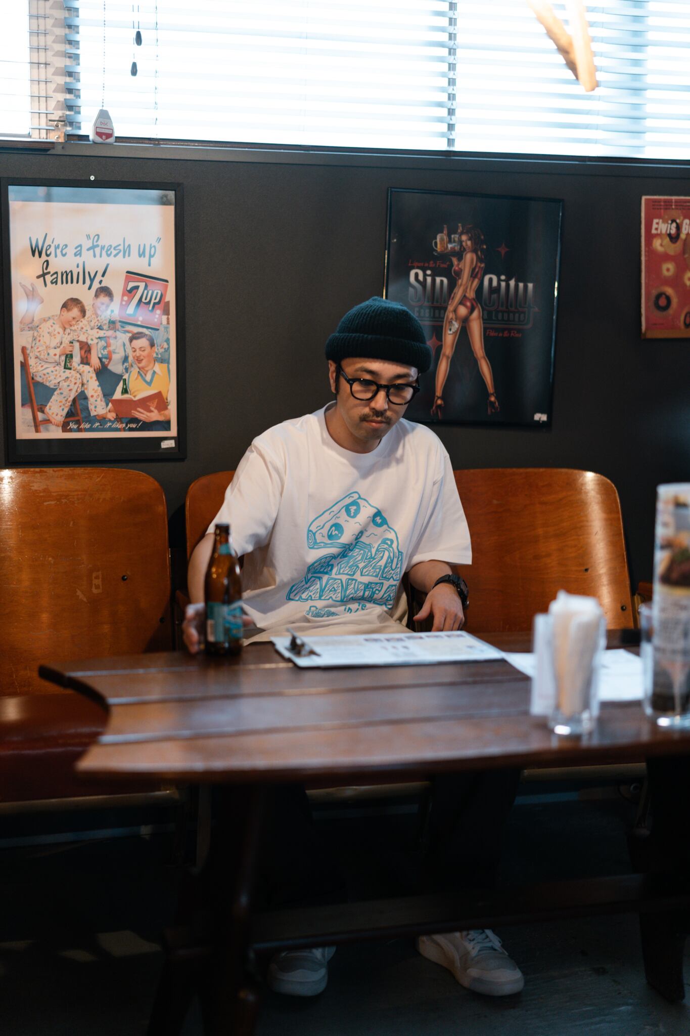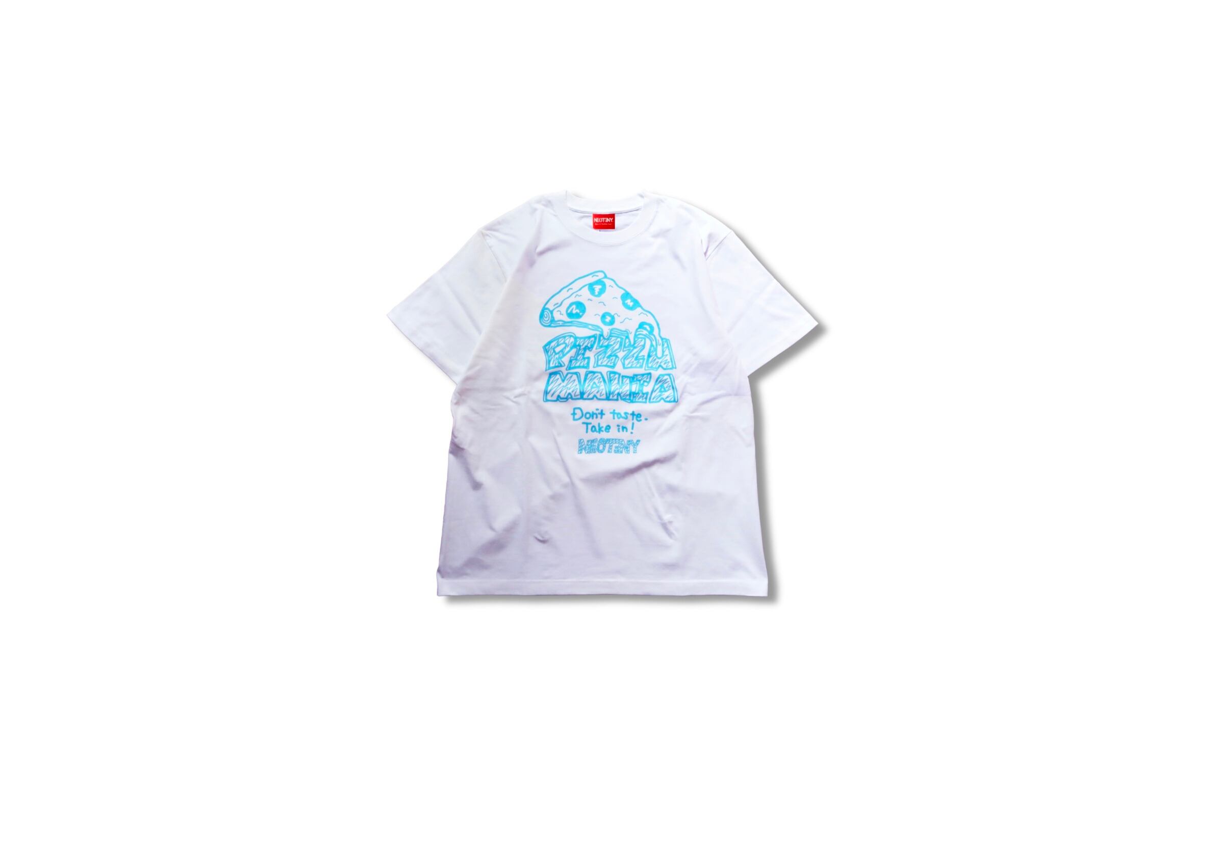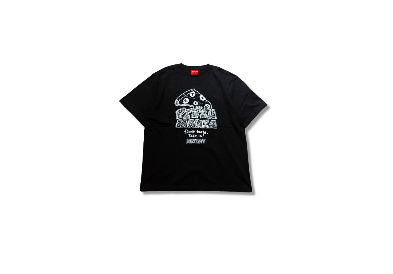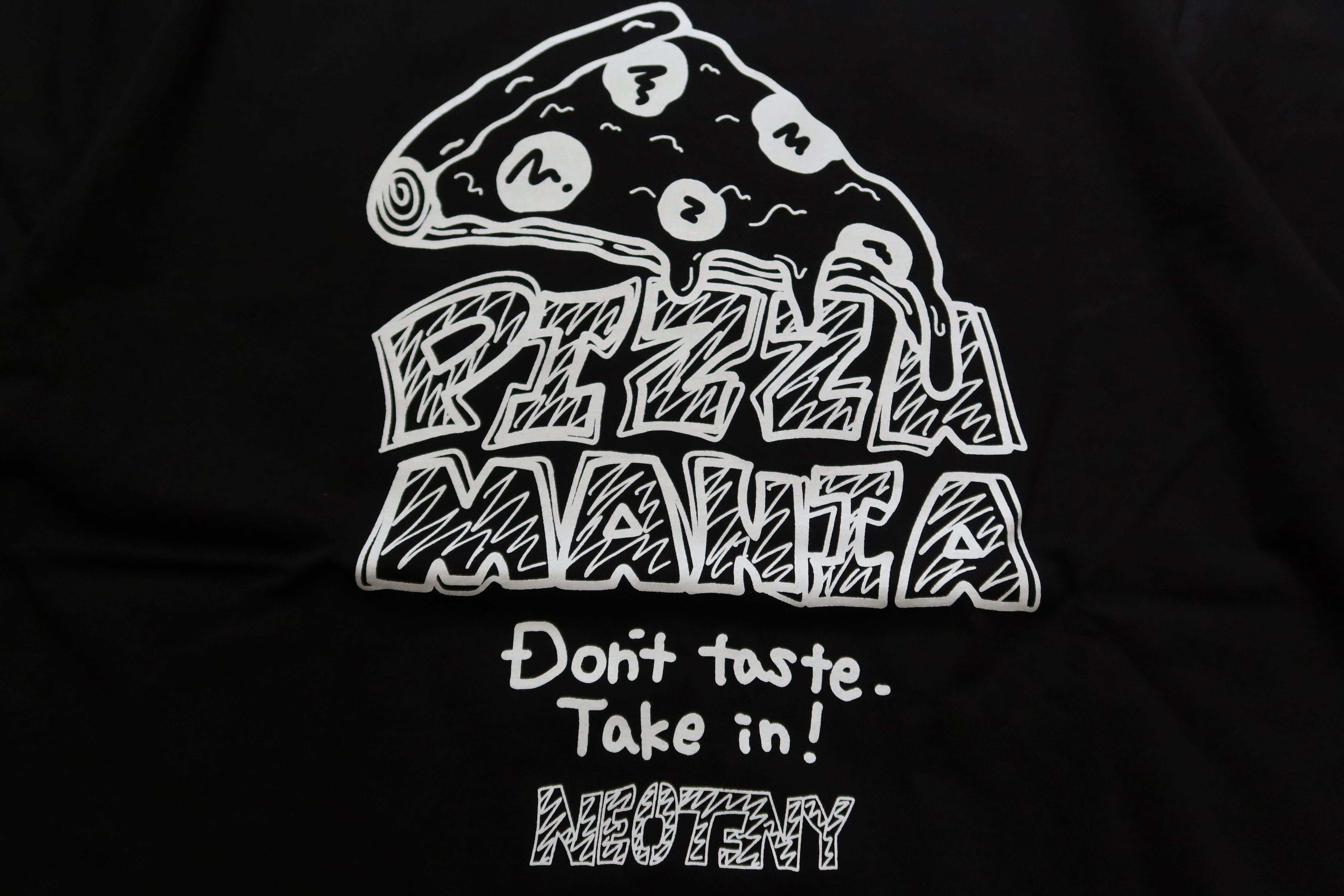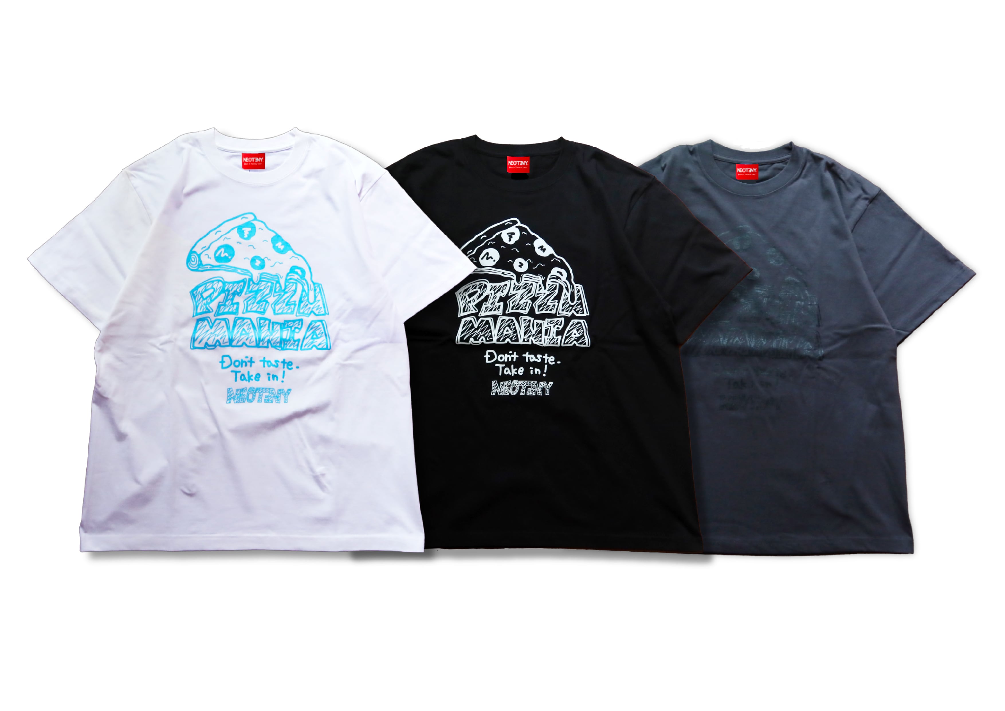 ・ピザのイラストに手描き風のロゴを配置したPOPな雰囲気のグラフィックTシャツになります。デザインはフロントのみになっています。落ち着いた印象でさらっと着て頂けるチャコールカラーもご用意致しました。